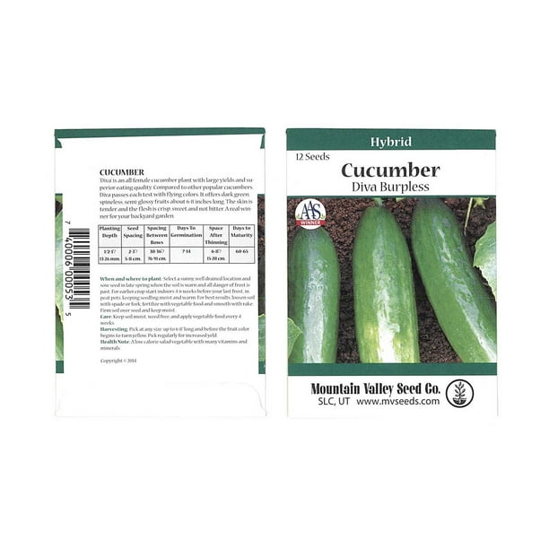 Diva Burpless Hybrid Cucumber Garden Seeds 12 Seed Packet Non Gmo Aas Award Winner Vegetable Gardening Seed Walmart Com