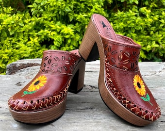 Sunflower Mexican Leather Sandal Huarache De Piso Bordado Etsy
