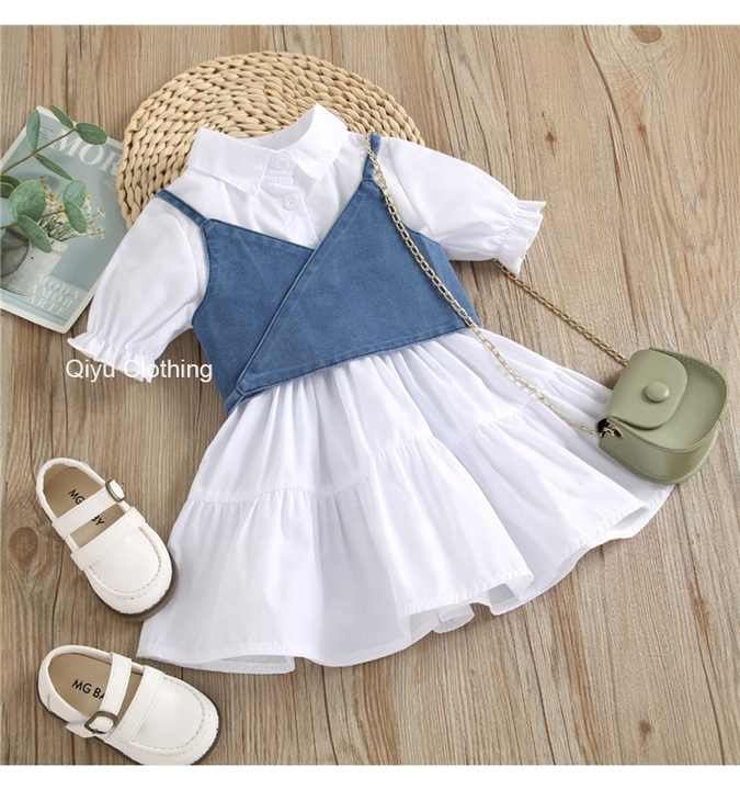 2023 New Summer Kid Girl Short Sleeves White Shirt Dress With Blue Suspender Band Baby Fashion Dress 1 5 Years Alibaba Com